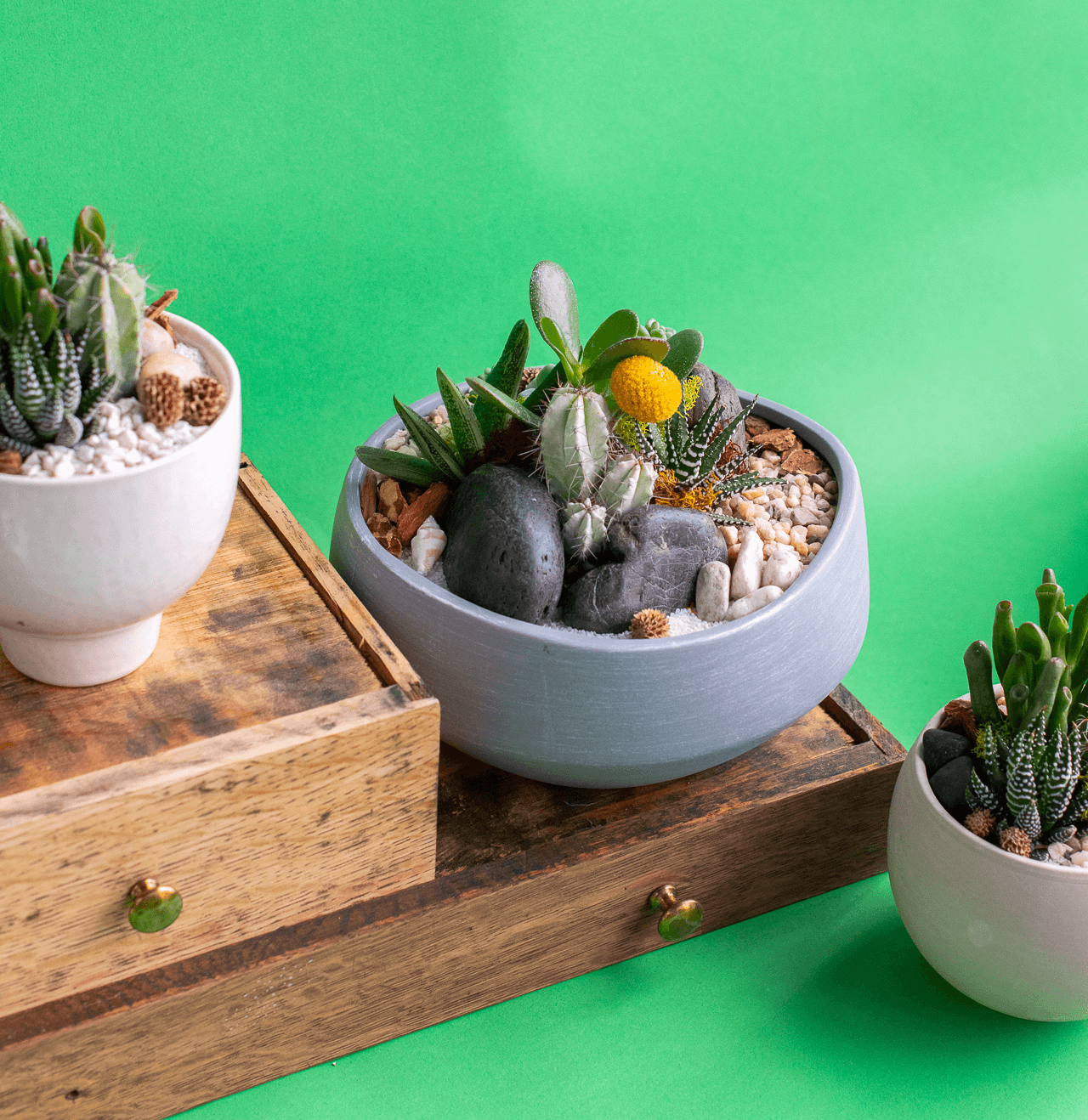 We offer a carefully curated selection of indoor and outdoor plants, hand crafted home goods that put quality ahead of quantity, and living art made right here in the shop: terrariums, landscapes, arrangements, vessels, and holders.