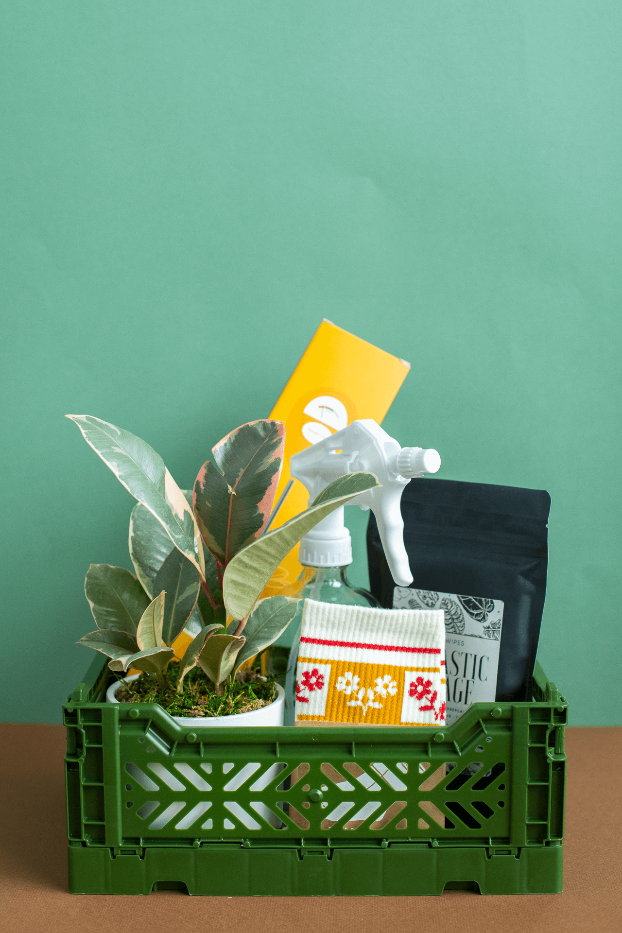 Select this fun, colourful crate along with other items from our shop and we will package it up with recycled paper tissue and a handwritten note, customizable by you. Measures 10.5" L x 7" W x 4.25" H