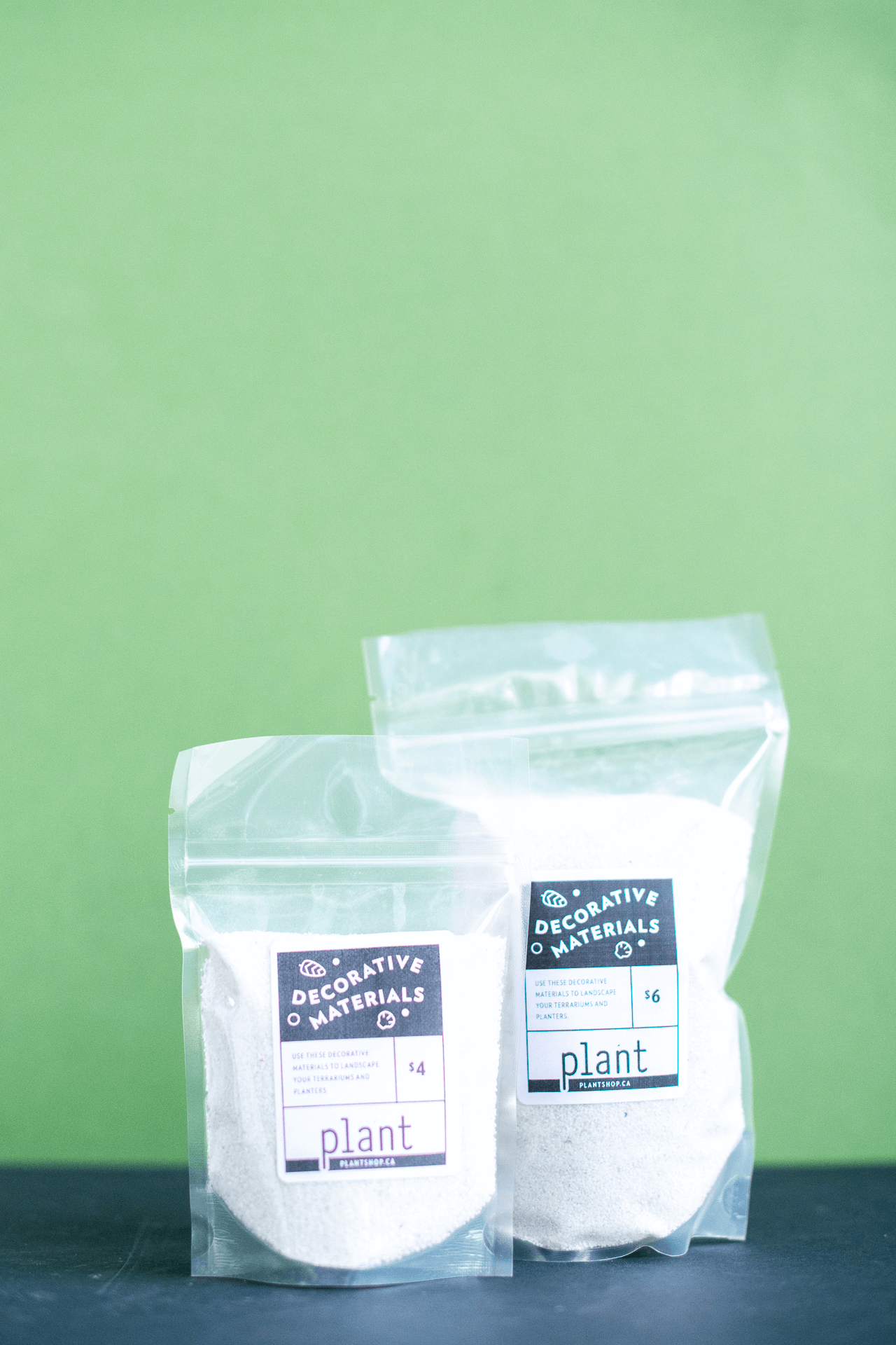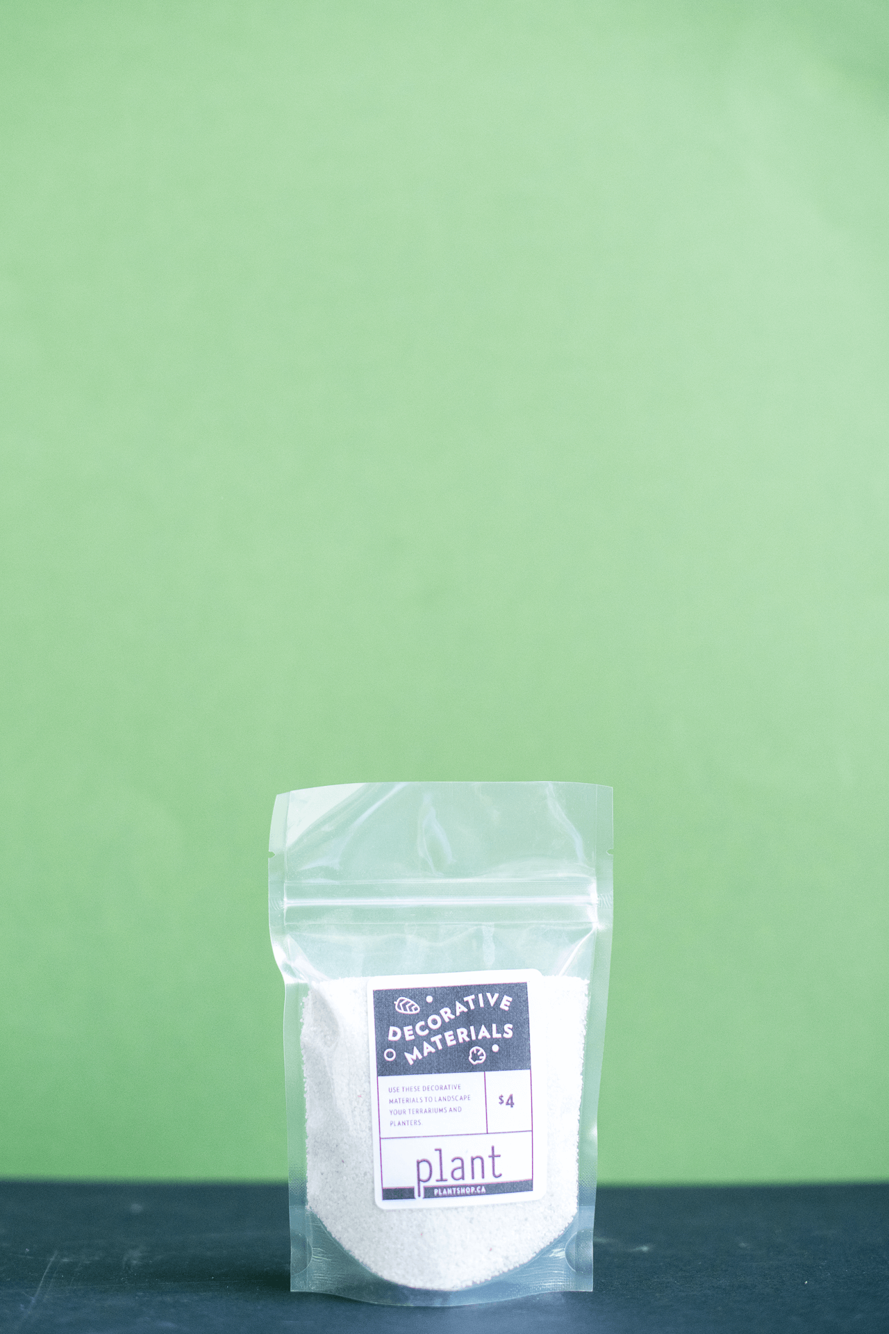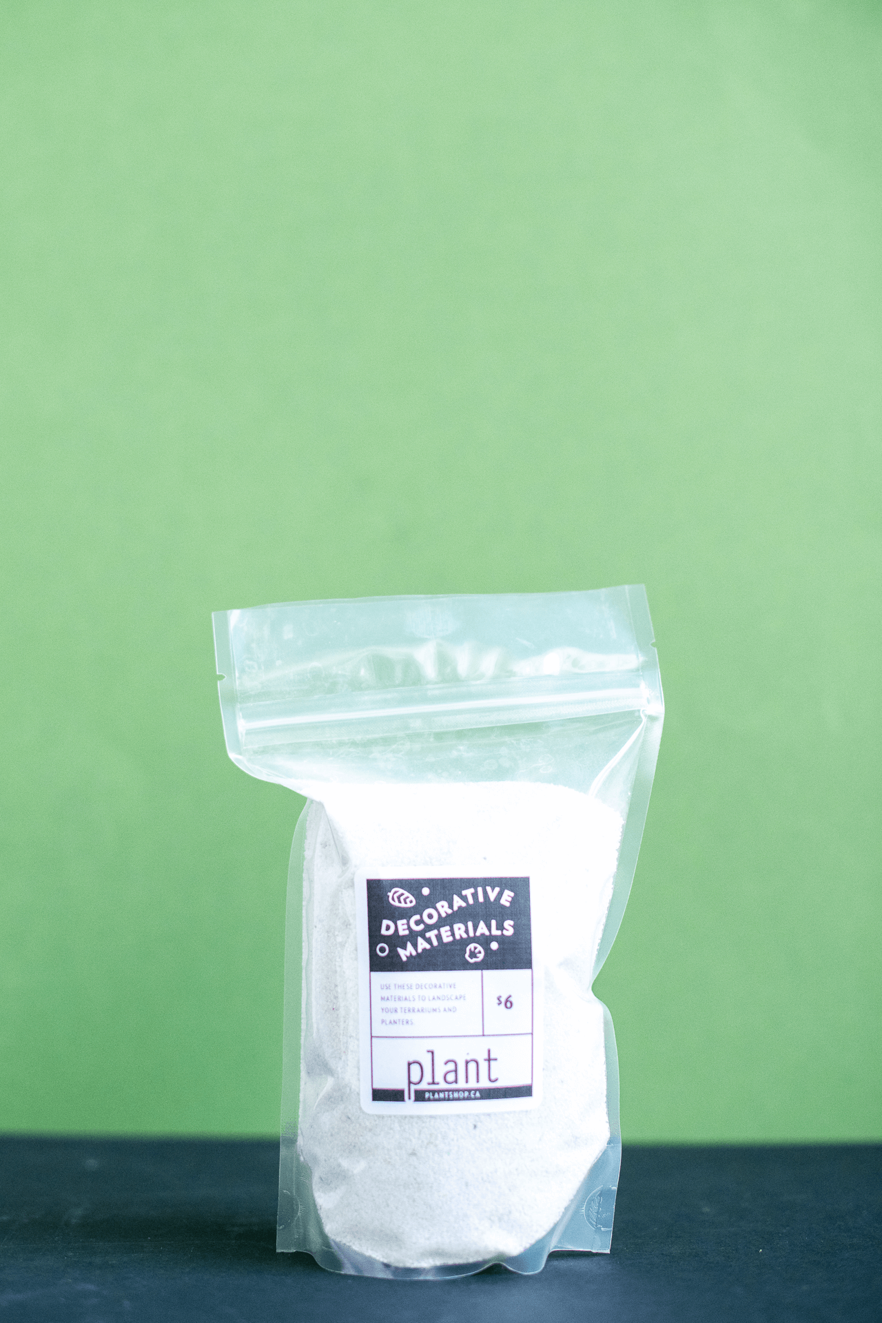 Our standard white sand, perfect for terrariums or to give a finishing touch to potted plants!