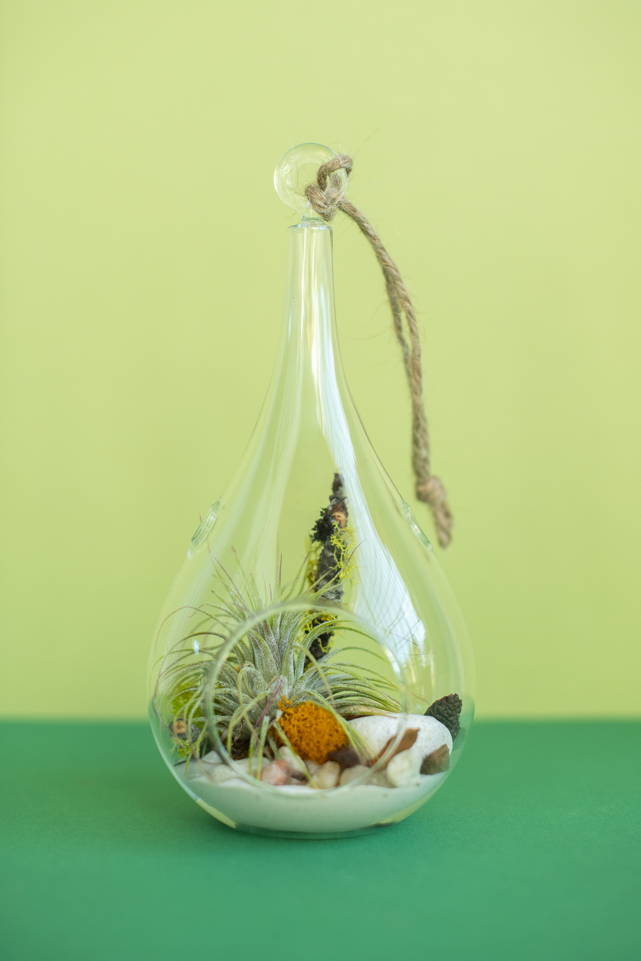 This lovely custom airplant terrarium makes a perfect gift! We will create a unique low-maintenance landscape tucked into a glass container. It's natural design will easily fit into any home and the lush combination of plants and decorative materials are sure to be a conversation piece.