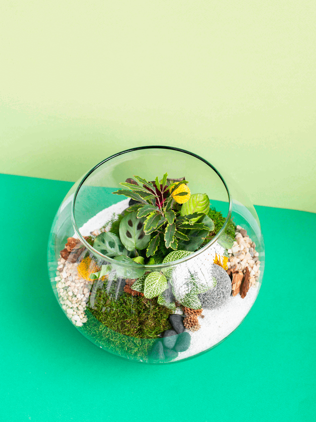 This lovely custom terrarium makes a perfect gift! We will create a unique low-maintenance landscape tucked into a glass container. It's natural design will easily fit into any home and the lush combination of plants and decorative materials are sure to be a conversation piece.