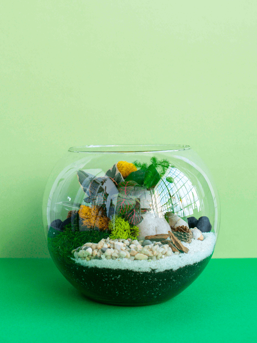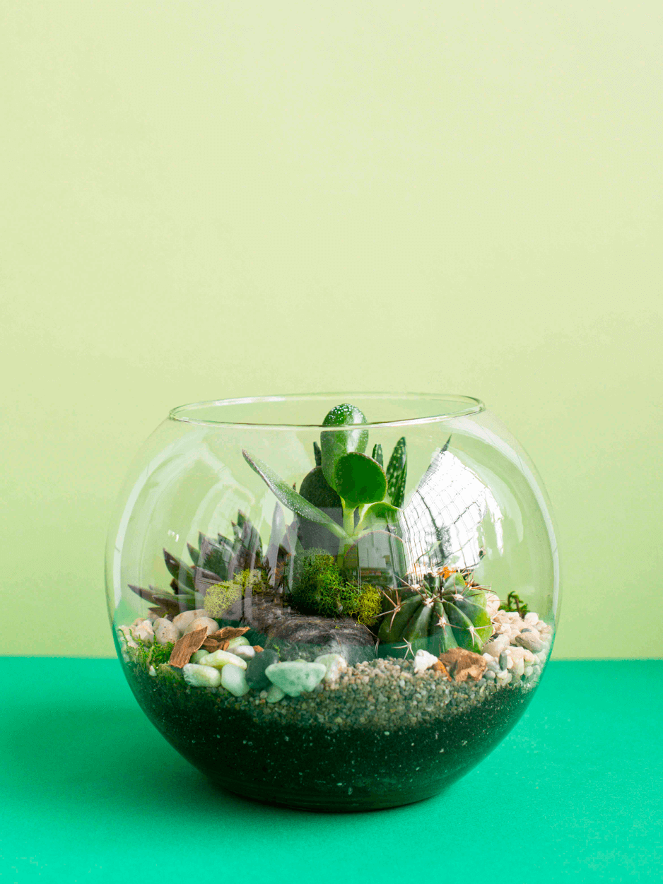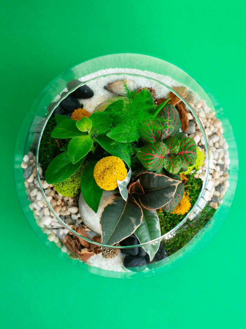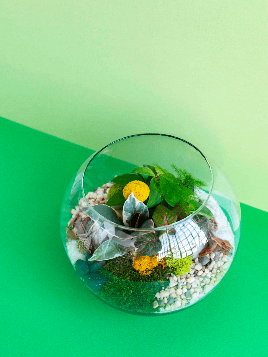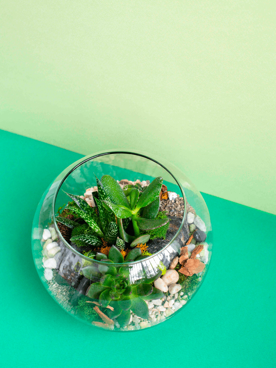 This lovely custom terrarium makes a perfect gift! We will create a unique low-maintenance landscape tucked into a glass container. It's natural design will easily fit into any home and the lush combination of plants and decorative materials are sure to be a conversation piece.