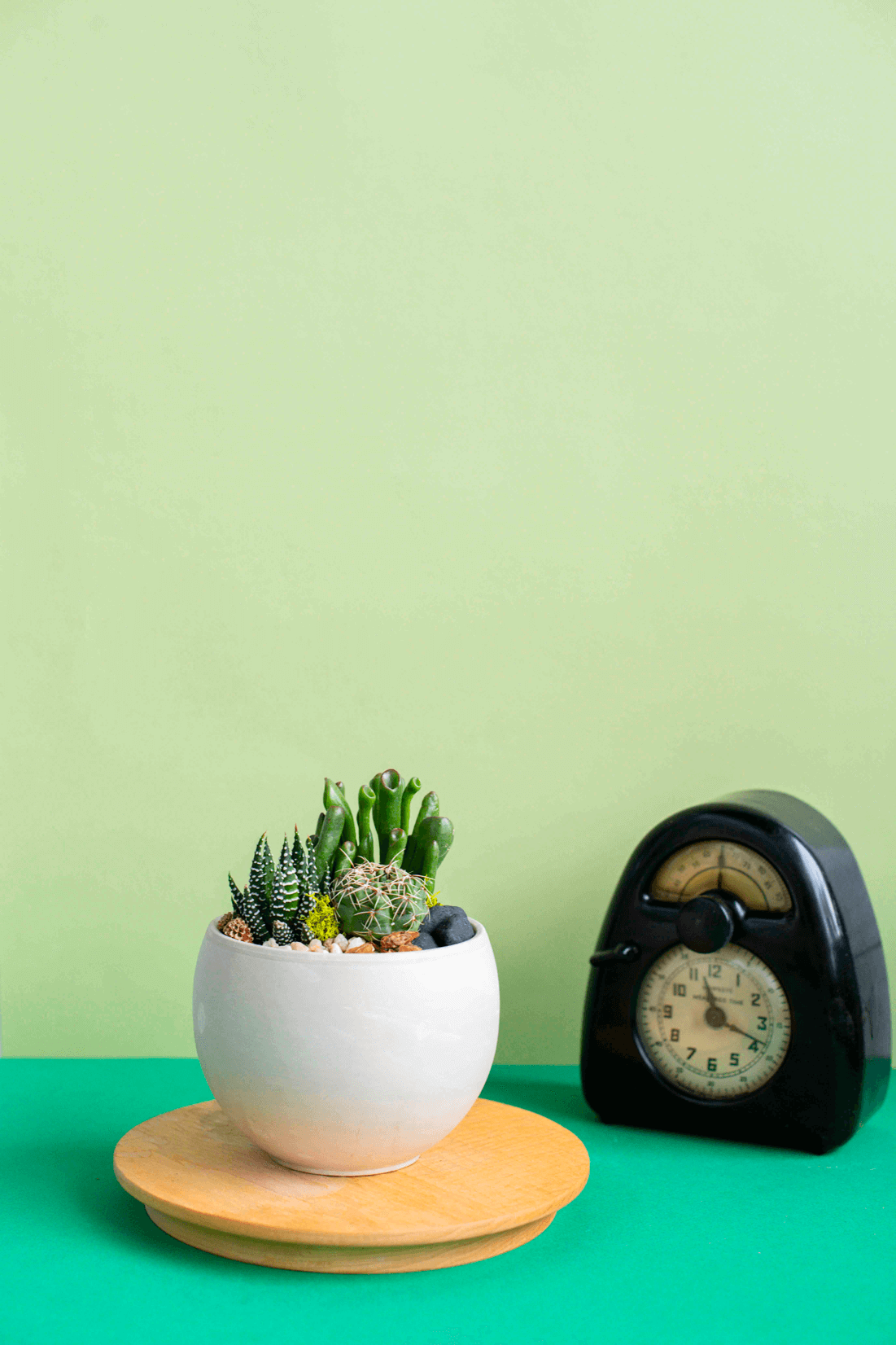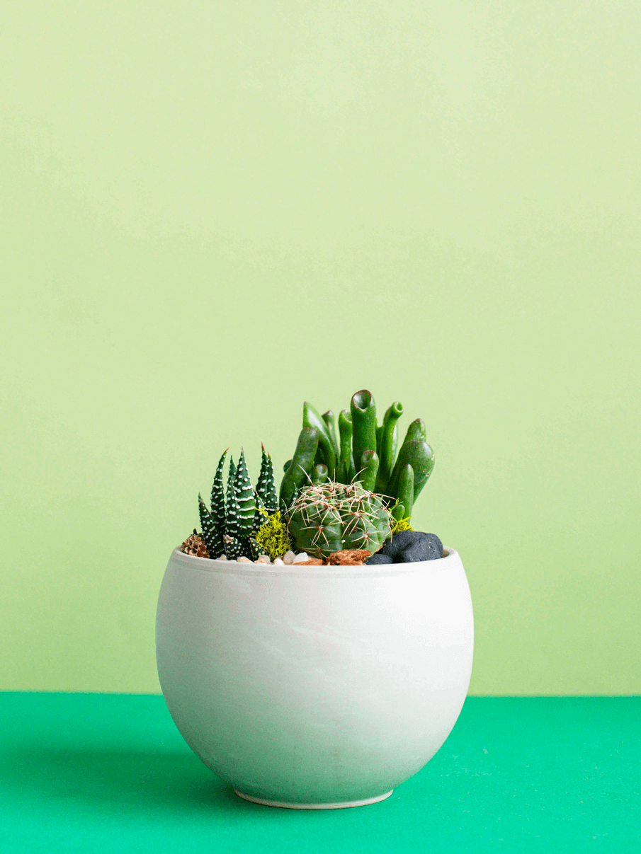 We recommend watering the tropical arrangement every 5-7 days, and the succulent / cacti arrangement every 10-14 days.