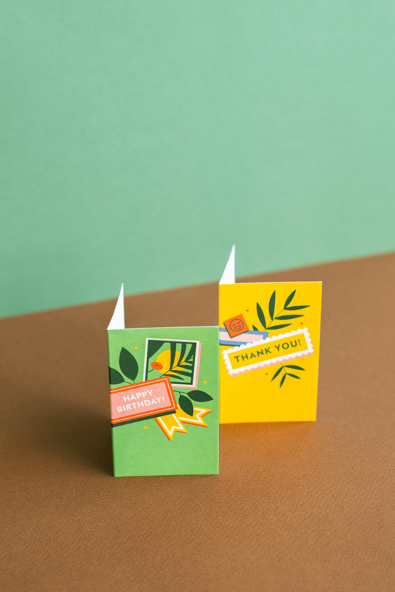 Measures 2.25" x 3.5" and comes with kraft envelope. Blank interior. Designed by Plant.